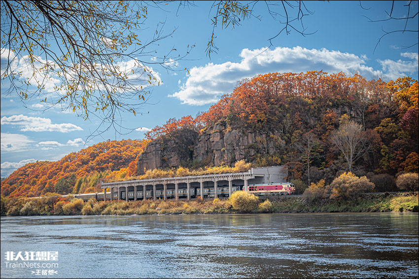 2024年10月1日,汤林铁路,DF4D牵引快速列车通过沙山明洞,该明洞也是伊春地区唯一的一座铁路明洞,实属罕见。