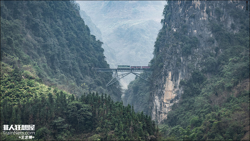 2025年1月。昆河线。东方红21型内燃机车牵引货列驶过人字桥。
