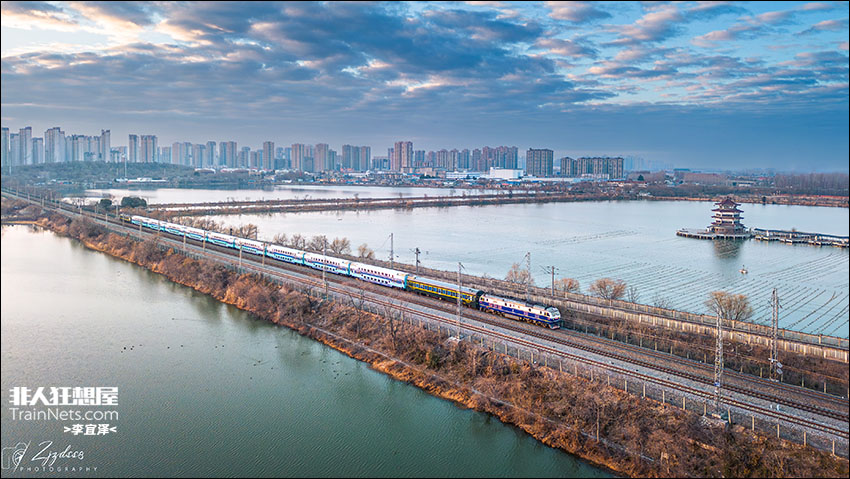 2025年1月11日,京沪线,K8417次(淮北-芜湖)身披落日余晖,提速驶过蚌埠市龙子湖,接近蚌埠东站。