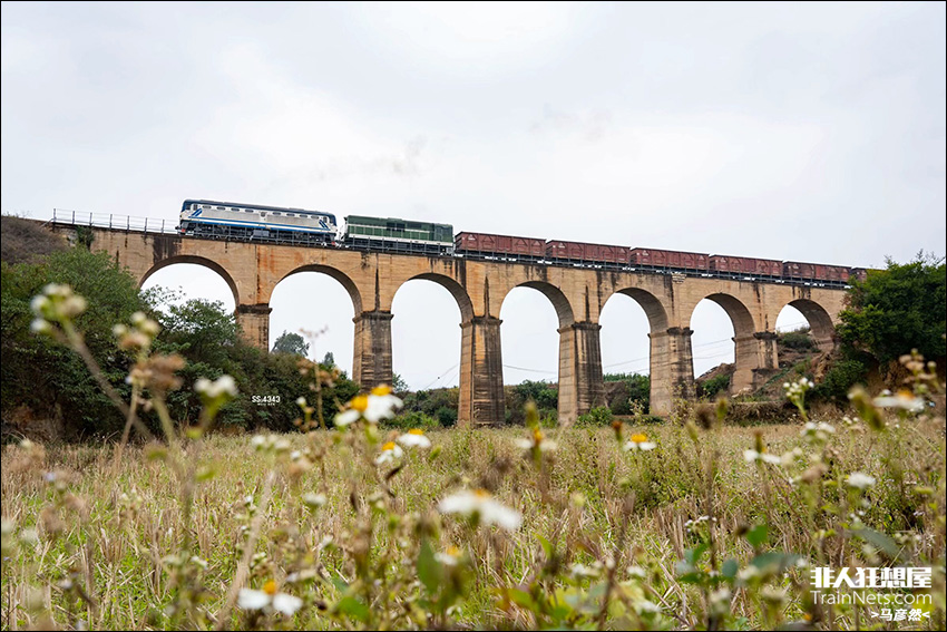 2024年12月,昆河线,开远南场-玉林山站区间,30035次列车通过七孔桥,随着气温回暖,桥下的鬼针草已经开出些许花朵。