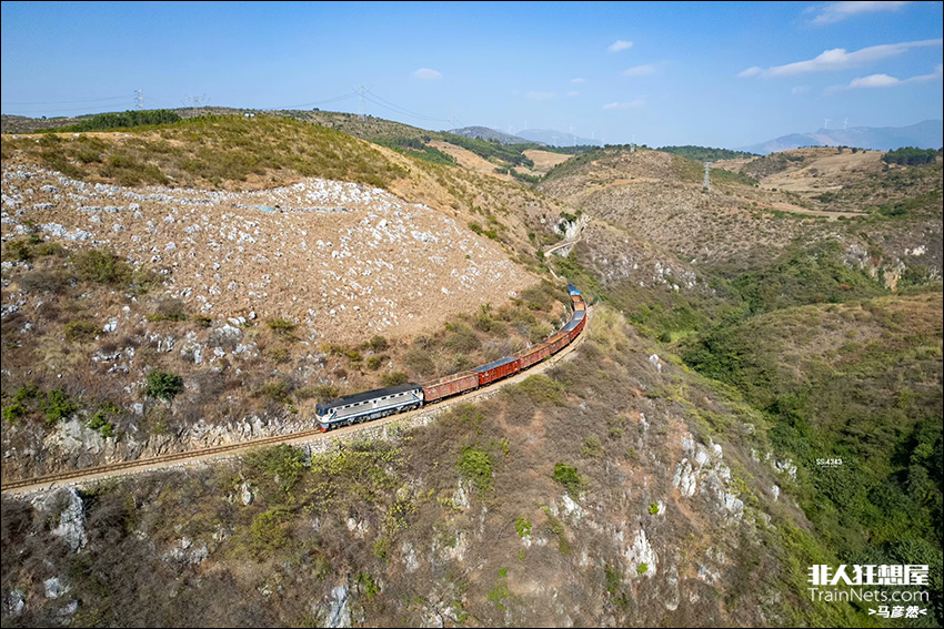 2024年12月,昆河线,大塔站-驻马哨站区间,49101次列车从悬崖峭壁旁驶过。