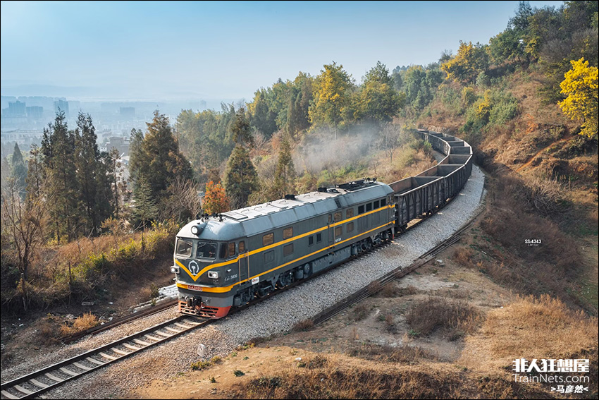 2025年2月,东川支线,57121次列车从平坦的寻甸坝子爬上山区,开往天生桥场方向。