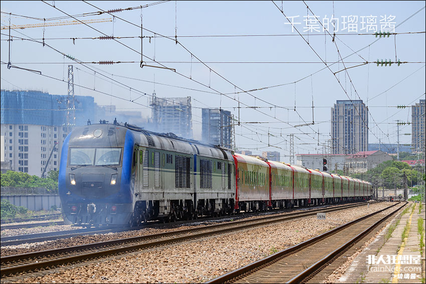 2025年4月27日,由DF4D牵引首发的“潇湘号”Y57081次通过新开铺站,由于广铁没有600V空调发电车,故将DF11G型内燃机车当作空调发电车挂于列尾。