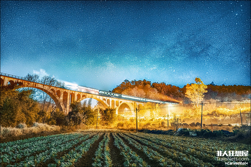 2025年2月5日凌晨5时,K232次列车(昆明-厦门北)在银河拱桥下,行驶在龙岩市永定区坎市镇碧溪大桥上。