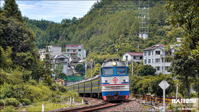 2024年7月,金温货线DF4B9493牵引K1049次列车(青岛北-温州),弯道通过交路村。