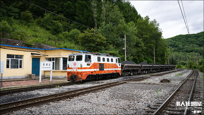 2024年7月3日。白山板石矿铁路。窄轨列车通过胜利站。