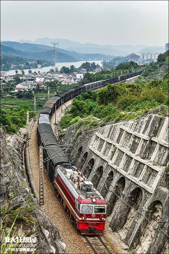 2024年8月29日,焦柳线,SS6B牵引货列运行在澧水南岸,前往张家界方向。