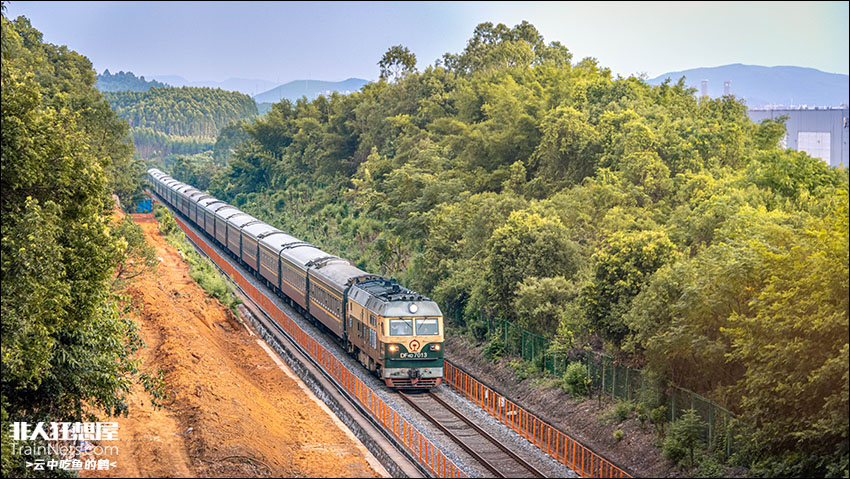 2024年9月。湘桂线雒容—洛埠段。“柳州虎”牵引一整列哈局车底送柳厂维修。