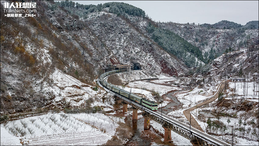 2025年3月,雪后的成昆铁路,5633次列车(普雄-攀枝花)接近乐武站。