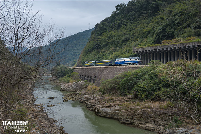 2025年2月13日中午,龙岩市雁石镇北河村,漳龙线,二月平推57877次下行前往苹林站方向。