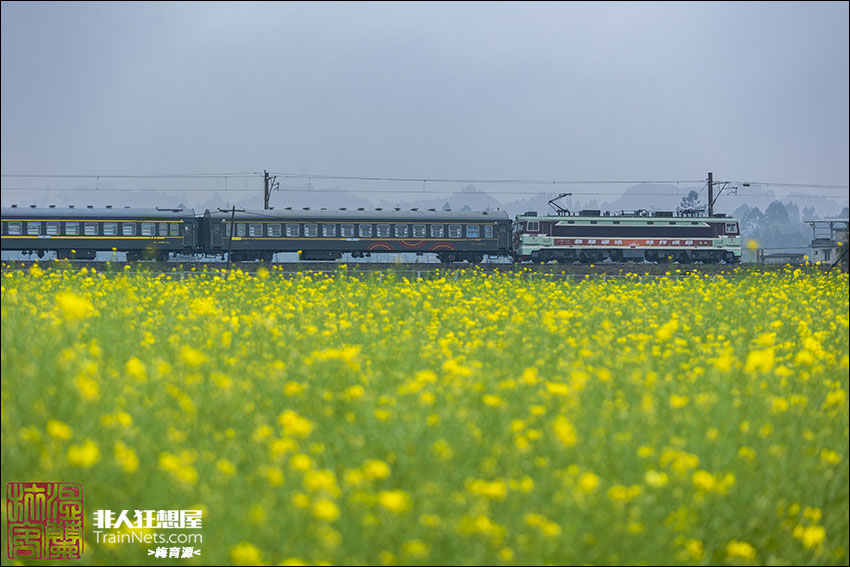 2025年3月,5619次列车(峨眉-普雄)飞驰在九里春风的尾梢。