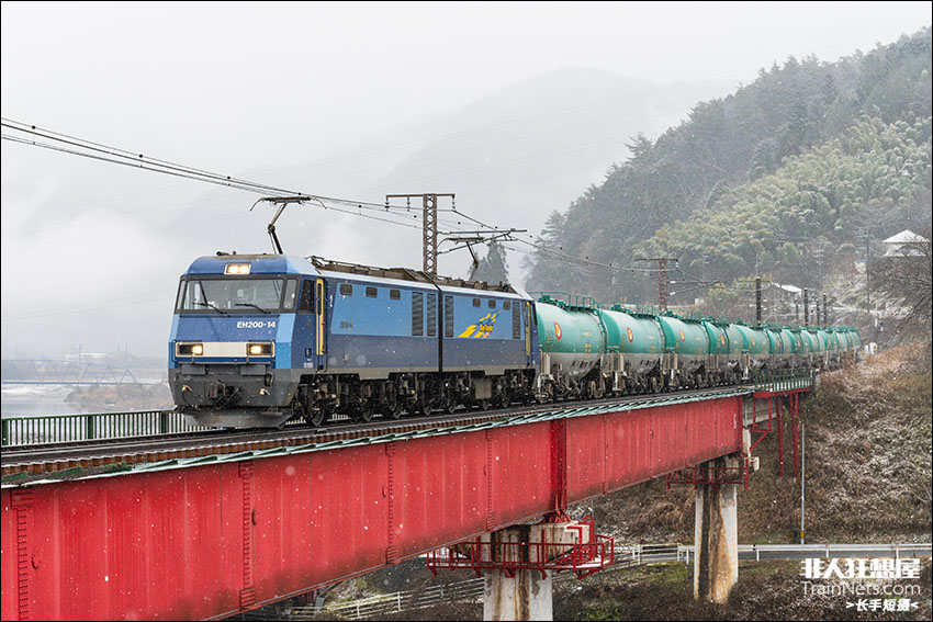 2024年12月,EH200-14机关车牵引的6088レ次石油直达列车运行在中央西线著名机位伊奈川铁桥上。