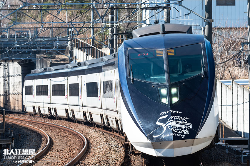 2024年2月,有着日本在来线最速的京成AE型特急电车,正在通过在京成SKY ACCESS线松飞台站,作为曾经日本规划的“成田新干线”的后继之线,最高运行时速160km/h的机联线丝毫不输新干线。