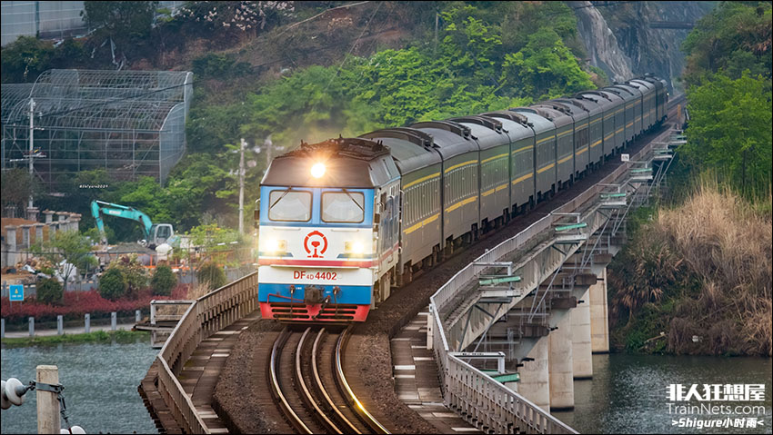 2024年4月6日,晚点的K1049次(青岛北-温州)快速驶过三溪口大桥接近青田站。