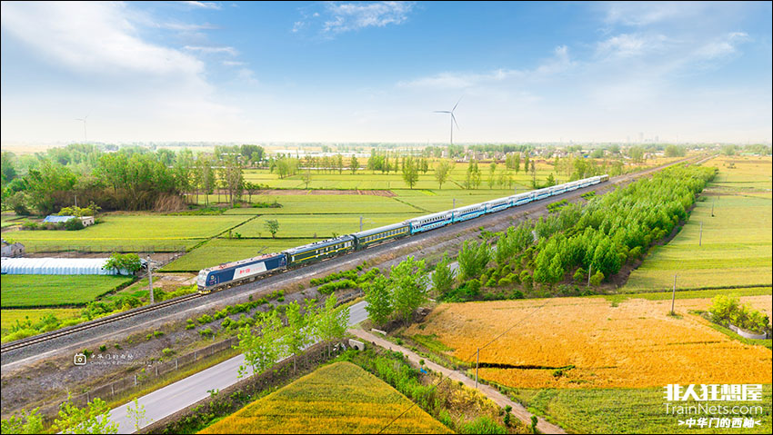 2025年5月4日,上海局湖蓝双层担当K5826次临客列车(合肥-淮北)通过炉桥站附近。