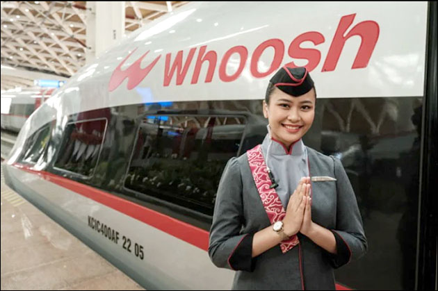 雅万高铁开通前,运营方为KCIC 400AF型动车组设计了品牌——“Whoosh”(相当于中国高铁的“复兴号”),其来源于印度尼西亚语中“Waktu Hemat, Operasi Optimal, Sistem Hebat”的首字母缩写,寓意“节省时间、优化运营、卓越系统”,同时在读音上也与高铁列车发出的声音类似。