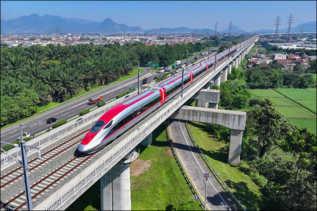 2023年10月17日,G1137次动车组列车从印尼雅加达哈利姆车站开出,雅加达至万隆高速铁路正式开通运营。