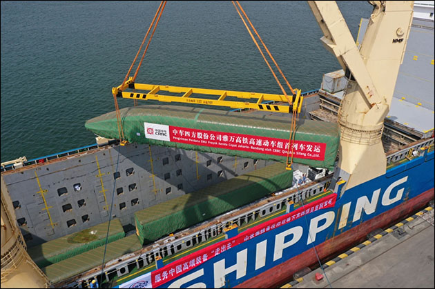 2022年8月21日,我国出口印尼用于雅万高铁的1组高速动车组和1组综合检测列车在山东港口青岛港完成装船,通过海运发往印尼。全部列车共分四批次从青岛陆续发往印尼。