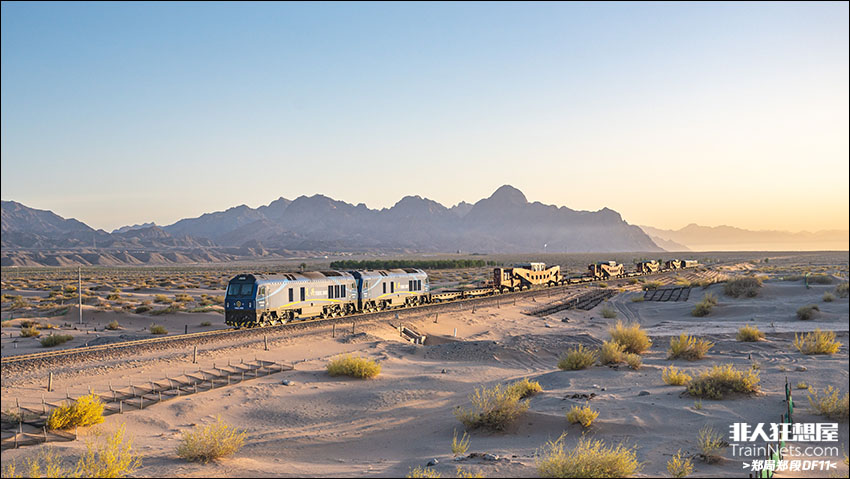 2025年4月,双机FXN3C牵引70001次在晨光中驶向茫茫大漠。