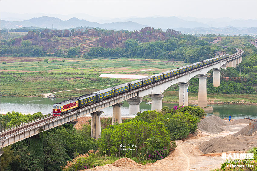 2025年5月3日,益湛线。T81次列车(上海松江-南宁)跨越桂江,即将停靠梧州站。