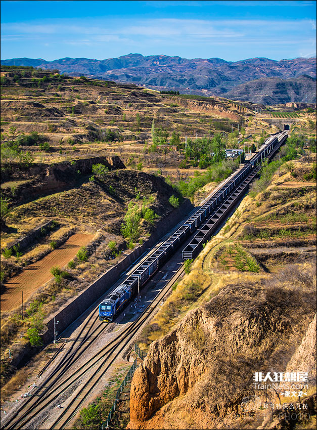 2025年5月。清晨,太焦铁路前刚上线一年的的FXN5C牵引煤列空车皮通过红崖展线红崖站,翻越太行山脉进入太原盆地。