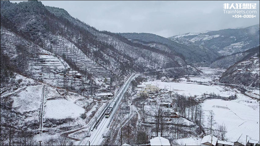2025年3月,成昆铁路,5633次小慢车行驶在倒春寒的雪中彝乡。