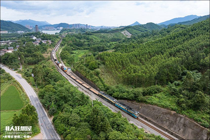 2025年6月8日。通过湘桂铁路永福站的小雨谷发电厂定子回送专列。
