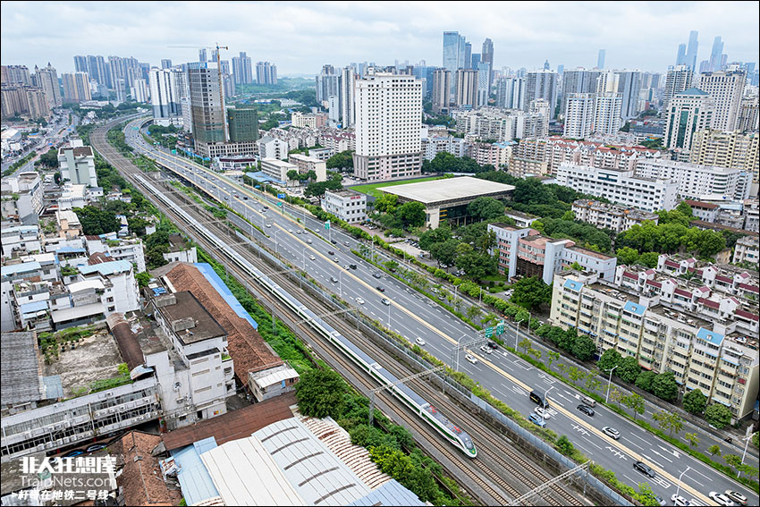 2025年6月13日。试运行的宁局新动集列车CR200J3-C即将抵达南宁站。
