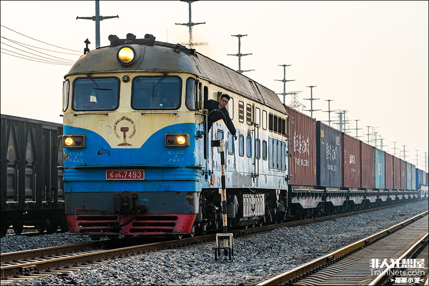 2025年1月。河北沧州。沧港铁路黄骅站。本务司机正在进行路票抛接。