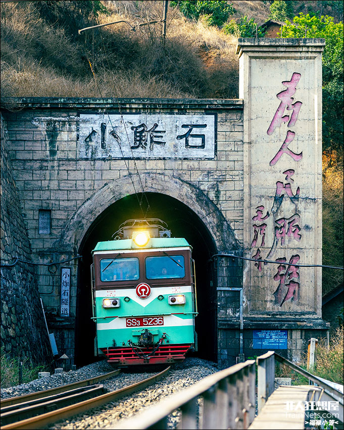 2025年5月3号,四川攀枝花,成昆线,SS3-5236牵引5634次列车冲出小鲊石隧道,接近三堆子车站。