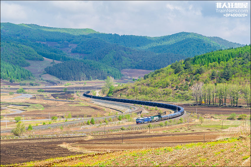 2025年5月。图佳线。8+5牵引货列接近朱家沟站。
