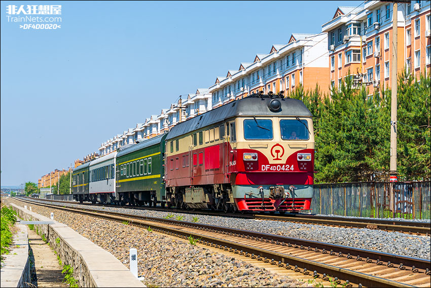 2025年5月。林密线。哈局牡段DF4D牵引检测列车接近鸡西站东场。