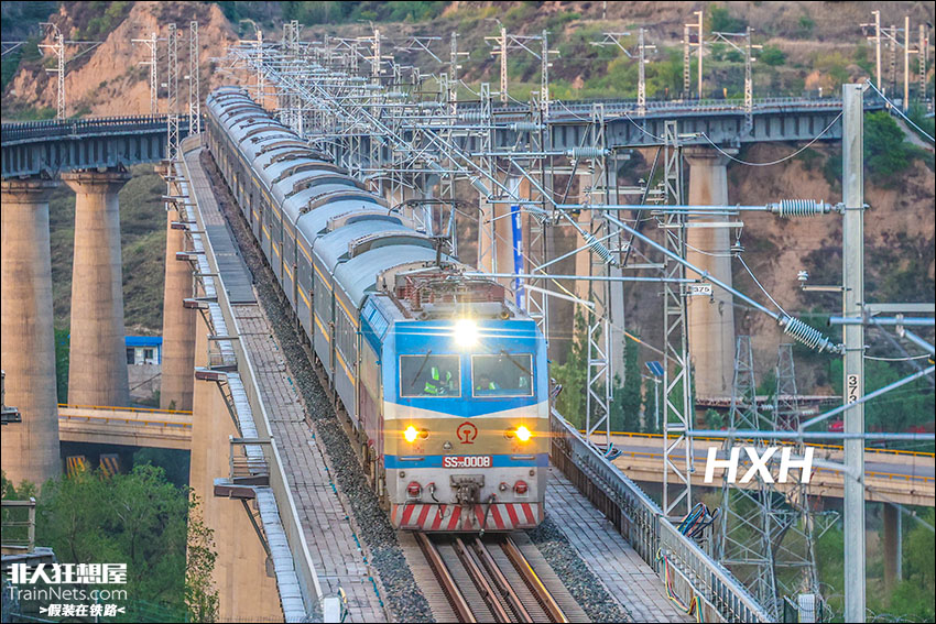 2024年5月6日。国能神朔铁路孤山川站,K8203/4次(神木-安康)旅客列车驶过野芦沟大桥。