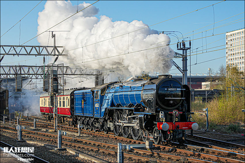 2025年4月。英国西海岸干线克鲁站。LNER A2 Blue Peter 60532 牵引保姆车前往普雷斯顿,为当天的旅游包车送去本务。