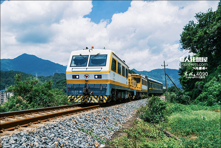 2025年6月,广东云浮,云浮支线检测车转场57972次开往肇庆站。
