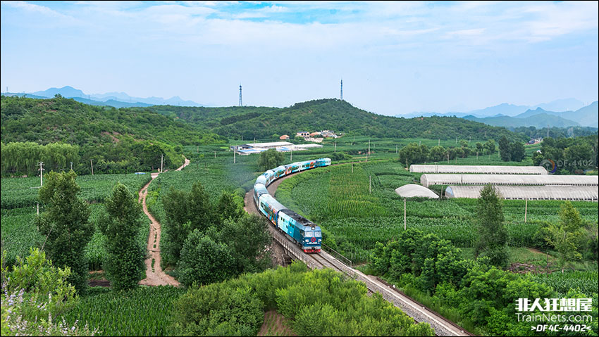 2025年7月9日,首发的“星光燕赵号”彩绘旅游列车Y964次(北京-隆化-承德-丰台)驶出京承线西大庙站。