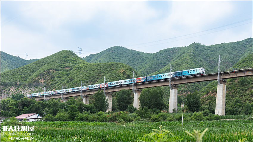 2025年7月9日。京通线。发的“星光燕赵号”彩绘旅游列车Y963次接近白旗站。
