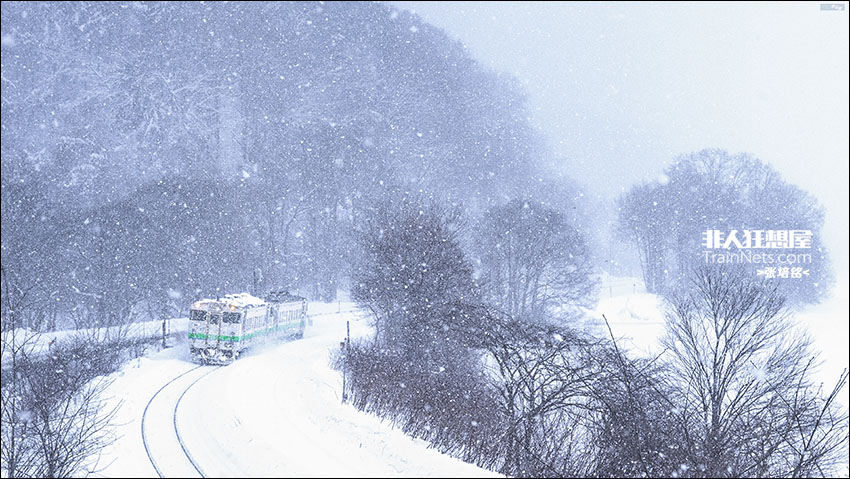2025年2月6日,日本北海道,担任函馆本线普通列车的Kiha40正在大雪中运行在大沼附近的山林里,这是属于函馆运输所Kiha40的最后一个冬天。