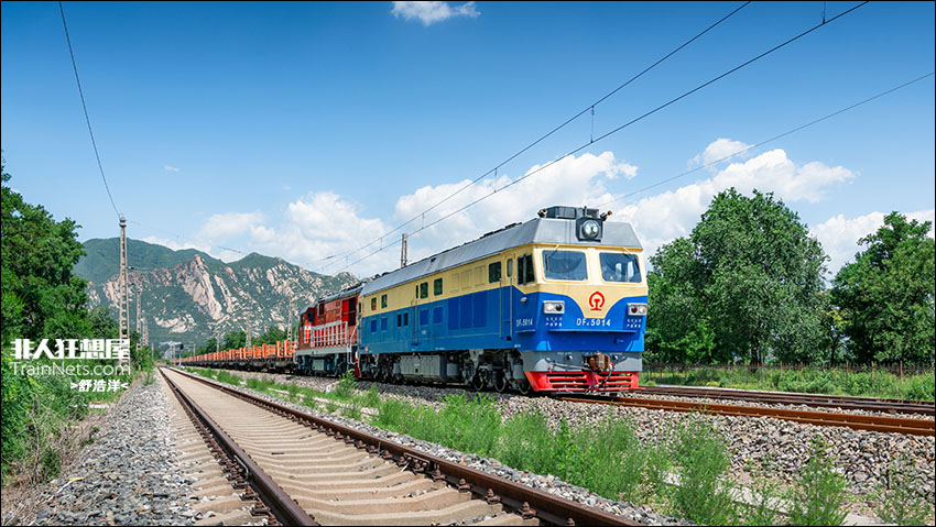 2025年6月,北京铁路西北环线,“4+7”组合牵引路用列车通过聂各庄站。