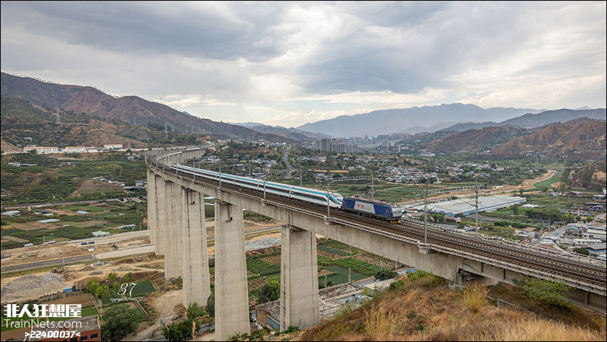 2025年5月6日,成昆复线海控湾特大桥,在西安局完成实验的CR220J3-1601开00101次(浐灞-昆明西)前往昆明局进行下一步试验。