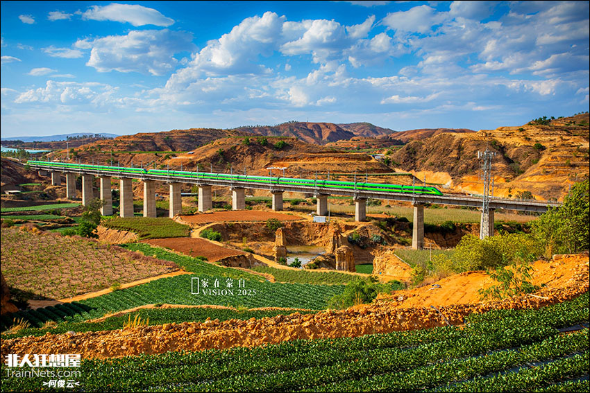 2025年5月。CR200J1-B型复兴号动力集中型电力动车组行驶于新成昆铁路云南境内。