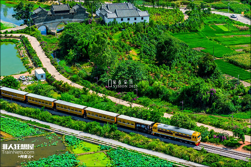 2024年7月。夏日的建水小火车穿行于荷田之上,身后古朴的乡会桥尽显建水古韵。