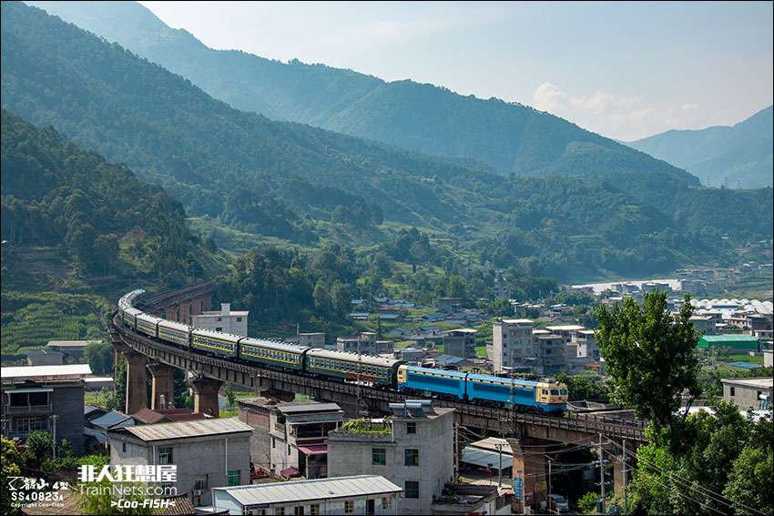 2025年7月17日,SS4G-7213牵引5633次列车(普雄-攀枝花南)行驶在成昆铁路拉洛特大桥上,临时“顶班”的SS4G搭配25B非空列车组成了一道难得一见的风景。