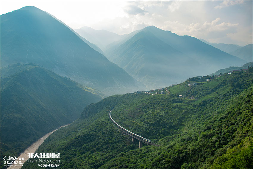 2025年7月16日,SS3牵引5620次列车(普雄-峨眉)行驶在成昆铁路乃托展线,列车驶出白石岩四号隧道后,随即驶上白石岩大桥。清晨的阳光洒在凉山深处,晨雾朦朦,如同梦境。