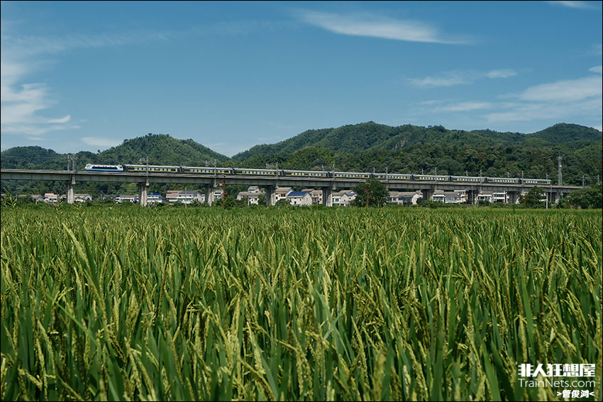 2025年6月,湖南益阳。SS8牵引广九25T担当的石长特快驶过三官桥稻田。