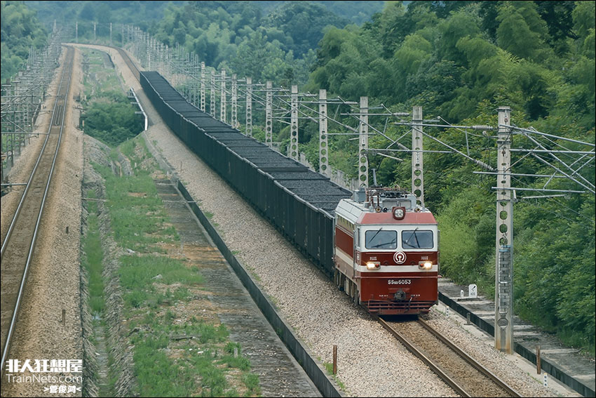 2025年6月,湖南汉寿。武局SS6B牵引煤炭大列驶过崔家桥。