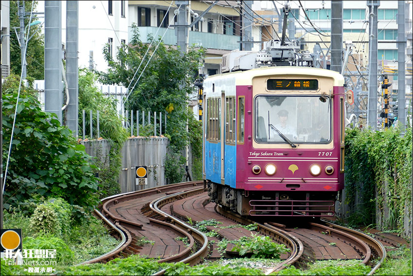 2024年10月3日,日本东京都电荒川线,都电杂司谷站,7700系电车准备进站。