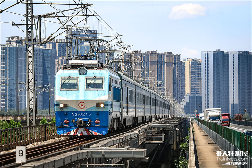 2025年6月30日,广铁长段SS8-0215牵引末班Z8311次(石门县北-长沙)驶过月亮岛湘江大桥,此景目前已绝版。