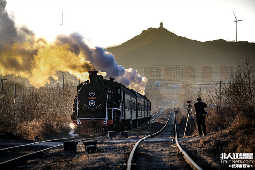 2025年1月19日,铁法线三家子站道口,上游1772牵引旅游列车返回调兵山站,金光穿透蒸汽。