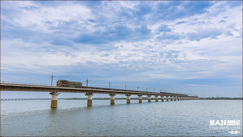 2025年6月17日,东海岛铁路。全路唯二的“方头瓜”由东海岛站牵引货列上行通过跨海大桥终到塘口站。